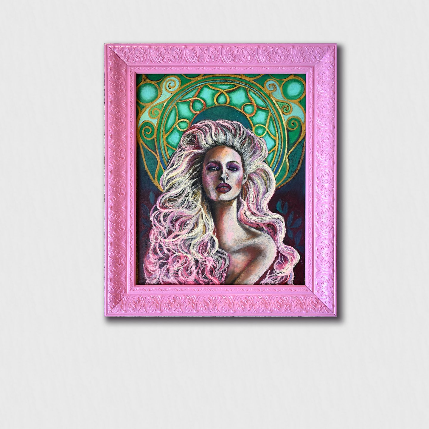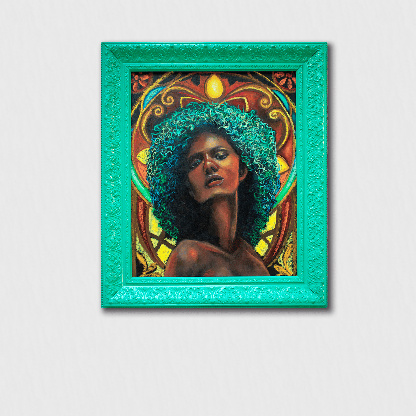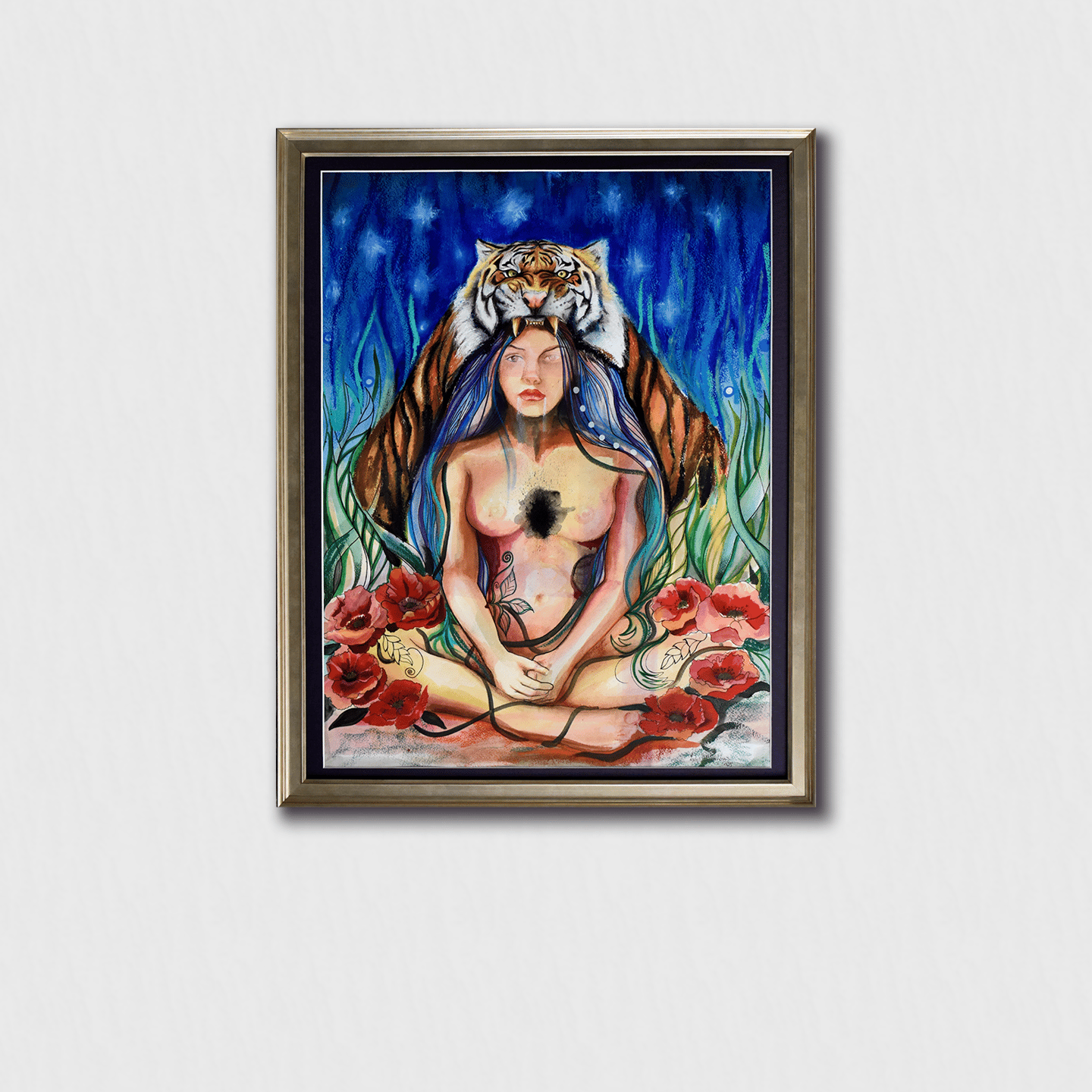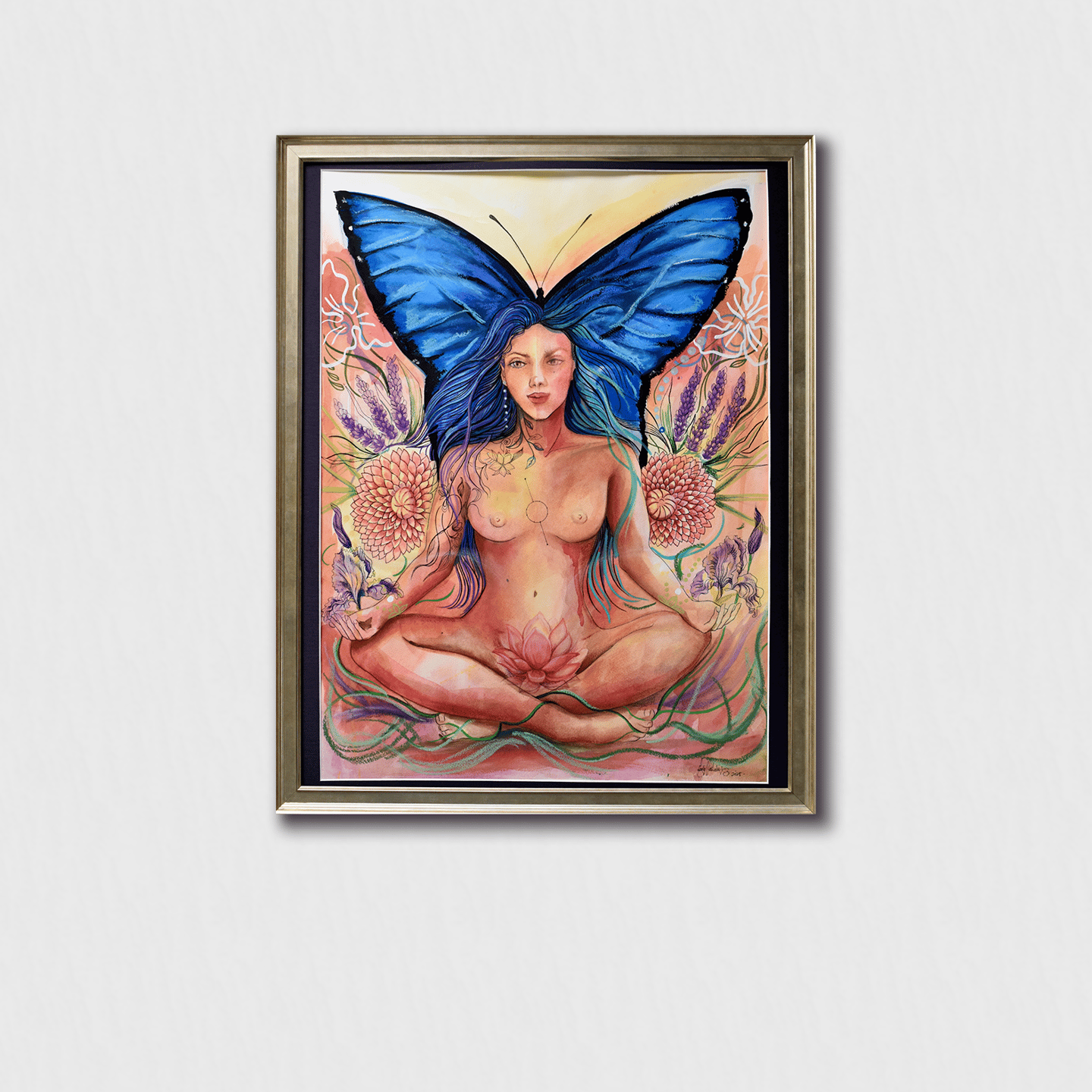 Medium: Mixed media on paper (watercolor, markers, gold leaf, and pastel)
