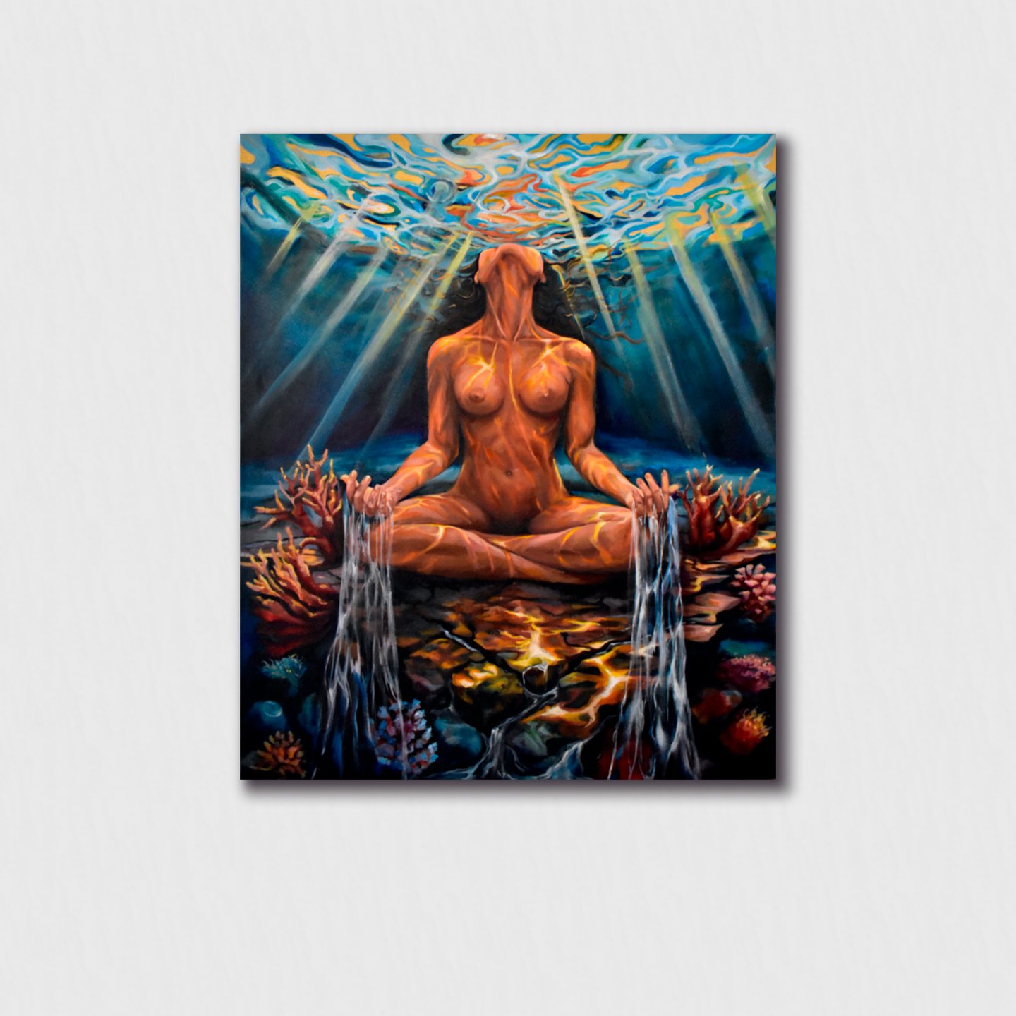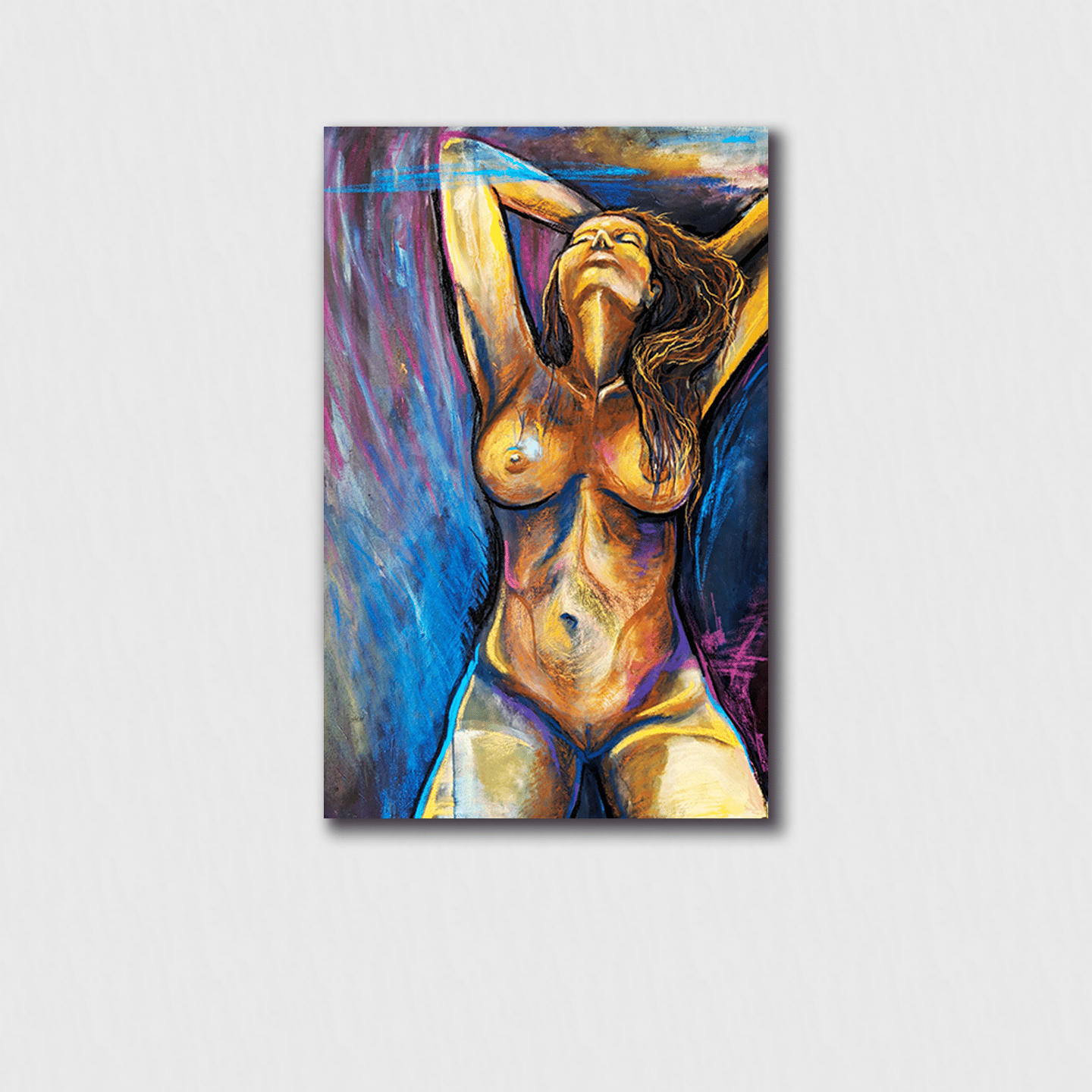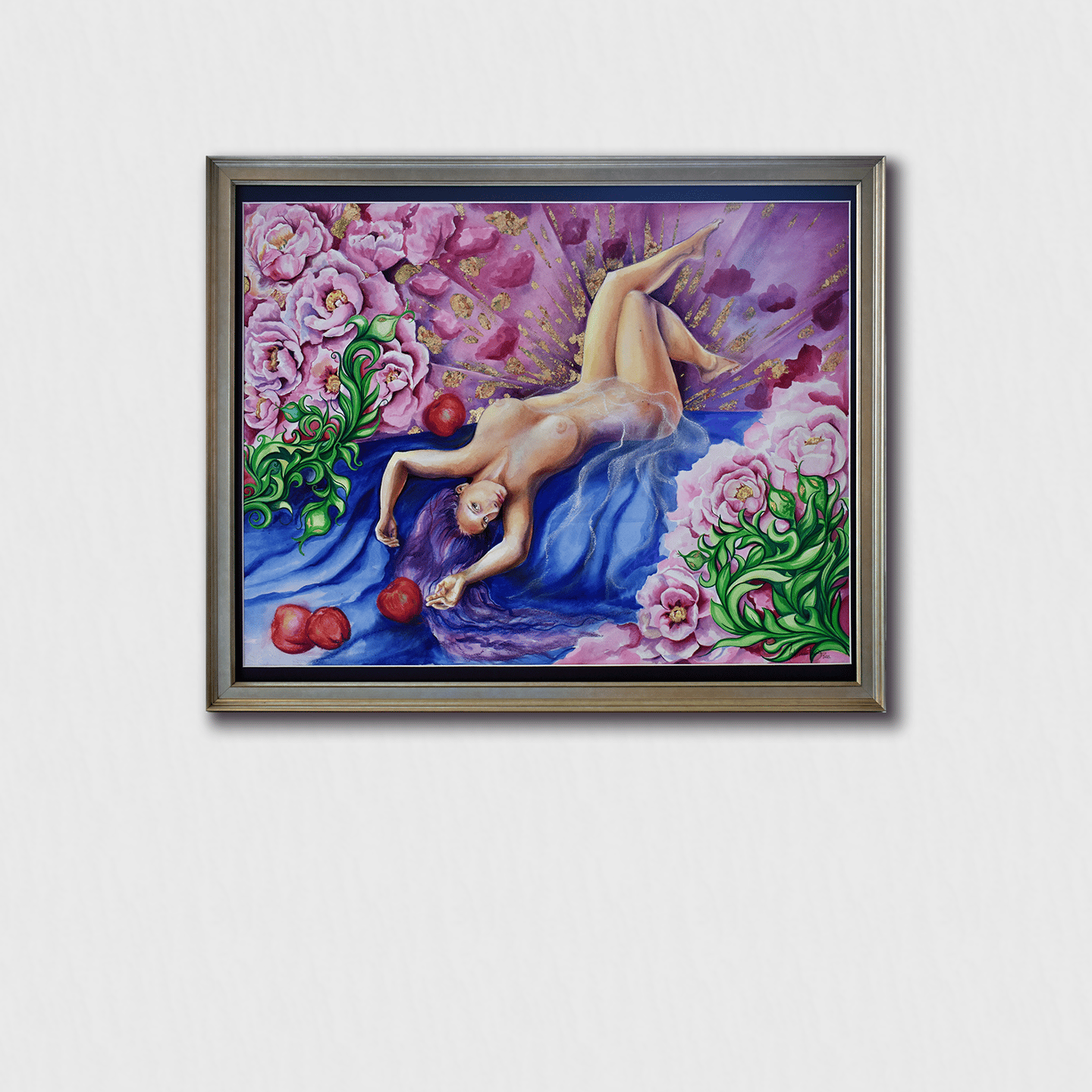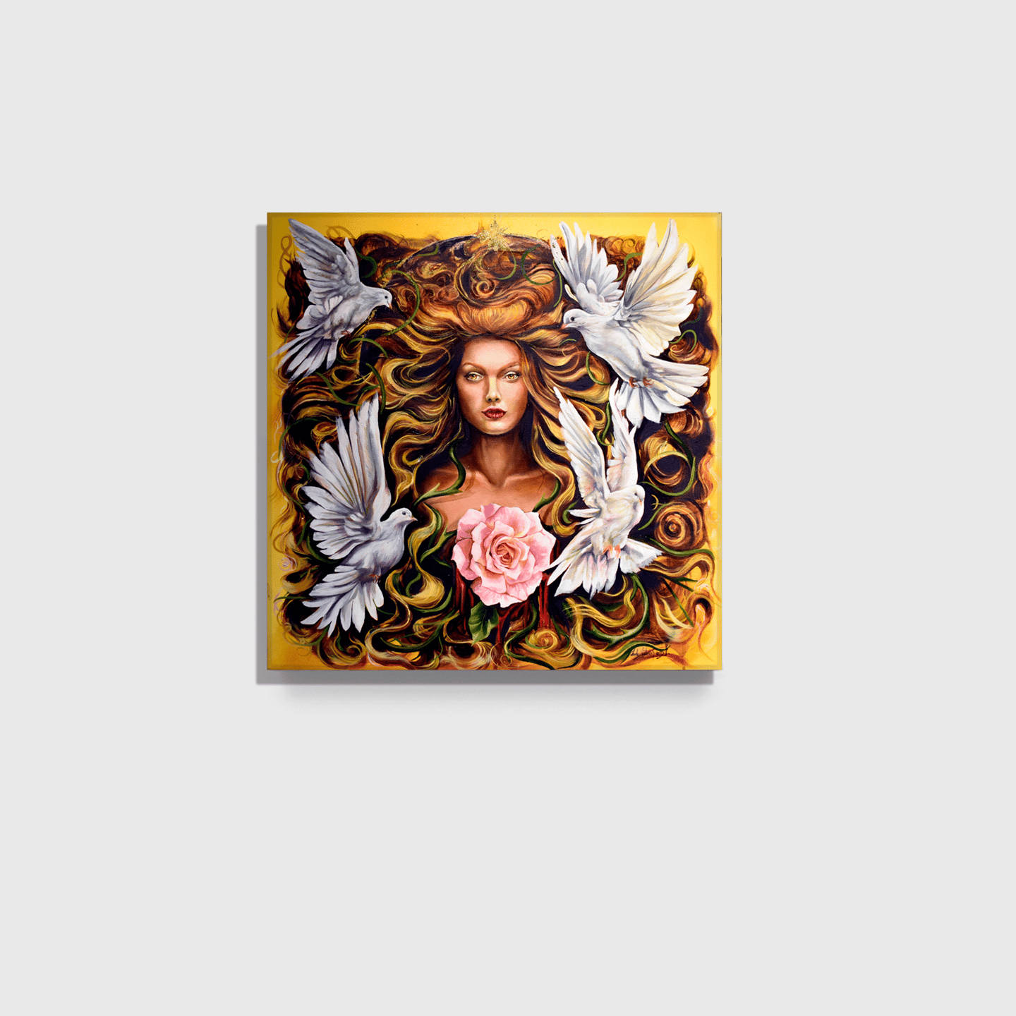 Medium: Mixed media on paper (watercolor, markers, gold leaf, and pastel)